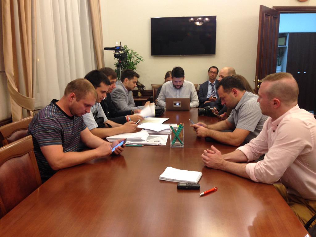 9 человек из демкоалиции уселись за стол председателя облизбиркома в его кабинете, трое объявили голодовку